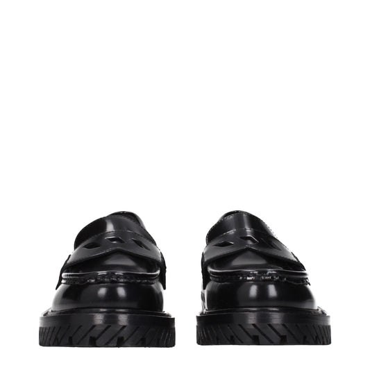 Off-White Black Leather Slip-On Loafers