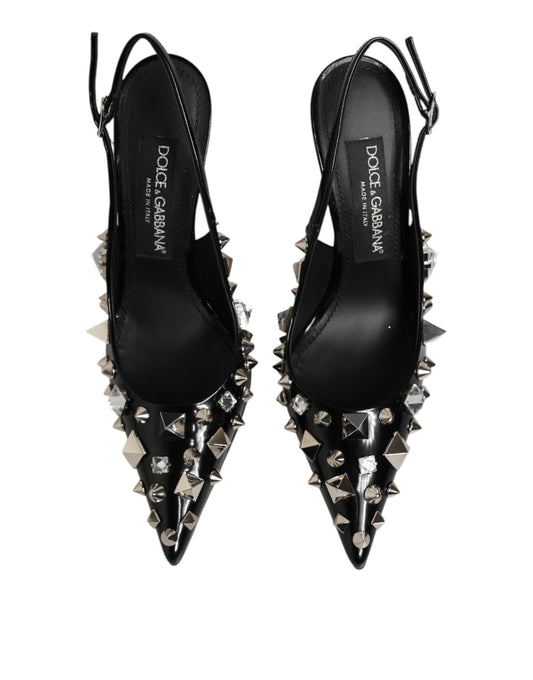 Dolce & Gabbana Black Studded Leather Heels Slingbacks Shoes