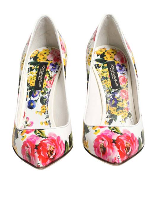 Dolce & Gabbana White Floral Leather High Heels Pumps Shoes
