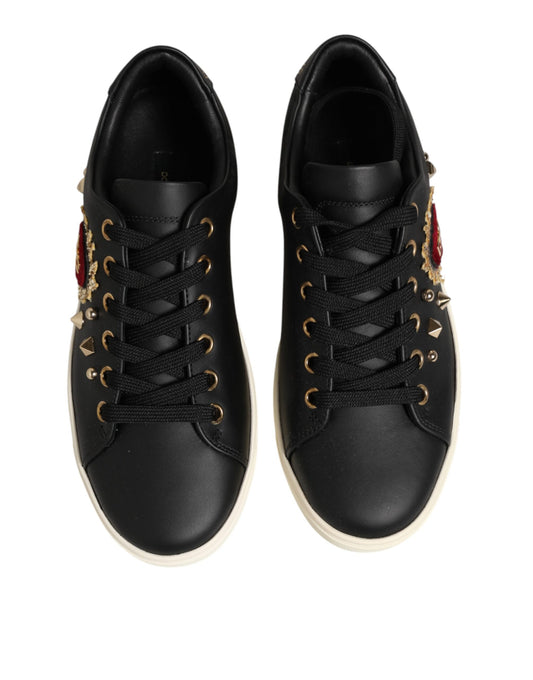 Dolce & Gabbana Black Leather Sacred Heart Sneakers Shoes