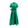 The short-sleeve shirt Dress by P.A.R.O.S.H. reimagines a wardrobe classic with an effortless and contemporary elegance. The classic collar and front button closure create a clean, structured line, while the fabric belt without a buckle ties at the waist, softly shaping the silhouette with natural ease. The result is an essential and versatile piece that blends tailored structure with feminine fluidity.