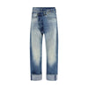 The straight-leg Jeans by R13 with turn-ups combine contemporary design with distinctive details. The asymmetrical button fastening and five-pocket design offer a practical and functional look, while the belt loops at the waist allow you to customize the fit. The ankle cuffs add a unique touch of style, perfect for those looking for a pair of casual jeans with an original twist. Versatile and straight cut, these jeans are ideal for completing an urban and fashionable look.
