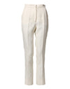 Dolce & Gabbana White Cotton Floral Brocade Dress Pants