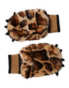 Dolce & Gabbana Brown Leopard Knitted Fur Wrist Mitten Gloves