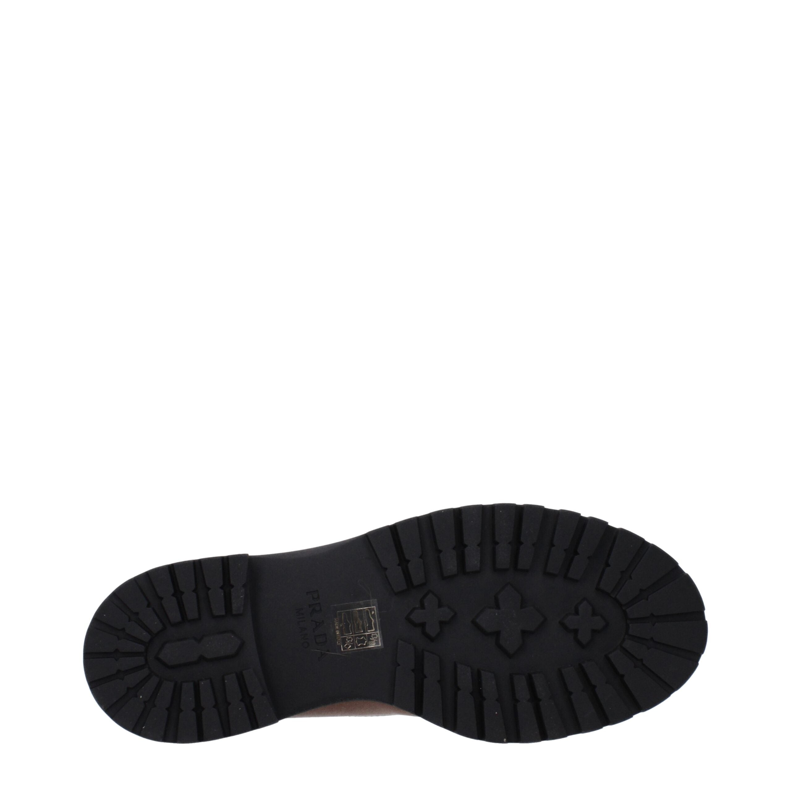 The product with MPN 1T704N3LPP055F0046 and code F85445 leather in brown is a ankle boots designed by Prada. It has features like front logo, side logo, back logo, vintage effect, aged effect, scratching effect.